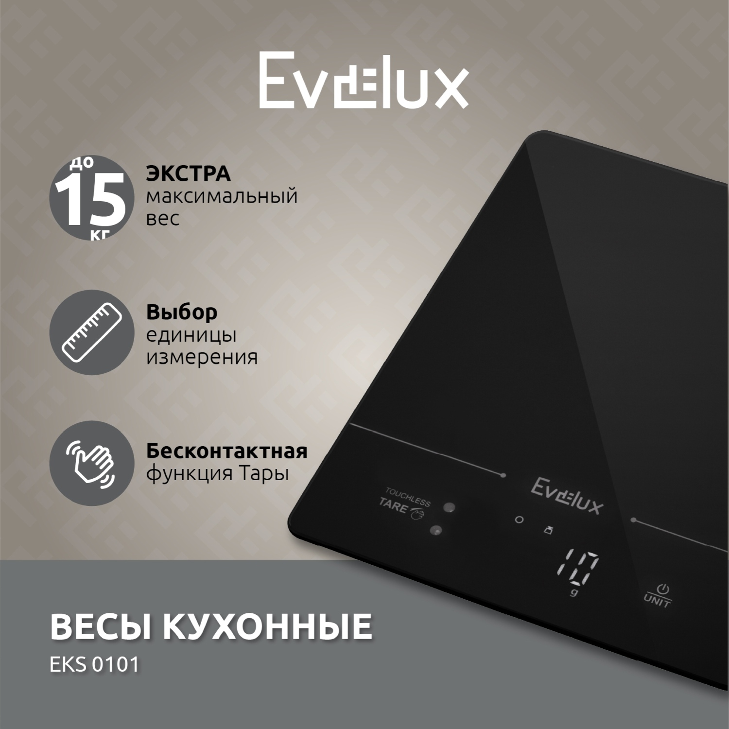 Кухонные весы EKS 0101 – это современный электронный прибор, предназначенный для удобного и точного взвешивания пищевых продуктов. Впечатляющая способность определять вес до 15 кг с высокой точностью до 1 грамма делает их незаменимым инструментом в кулинарии, особенно в контексте больших объемов работы. Прибор оснащен ярким LCD-дисплеем. Для удобства эксплуатации предусмотрен выбор единицы измерения: граммы, фунты, унции и миллилитры, а также измерение объема различных жидкостей – воды и молока. Весы оснащены бесконтактным включением функции "Тара", что предлагает дополнительное удобство использования: после установки емкости на платформу весов, в которой необходимо взвесить продукт, и отображения ее веса, достаточно поднести руку на расстоянии 3 см над фронтальной кнопкой для активации этой функции. Можно также последовательно взвешивать различные продукты, не убирая их с весов. После первоначального взвешивания следует повторно поднести руку на такое же расстояние над функциональной кнопкой; после звукового сигнала на дисплее появятся значки "T" и "0g", что означает активацию функции тары. Затем можно добавлять следующий продукт. Весы работают от 3 батареек типа 1,5 V AAA, которые включены в комплектацию.