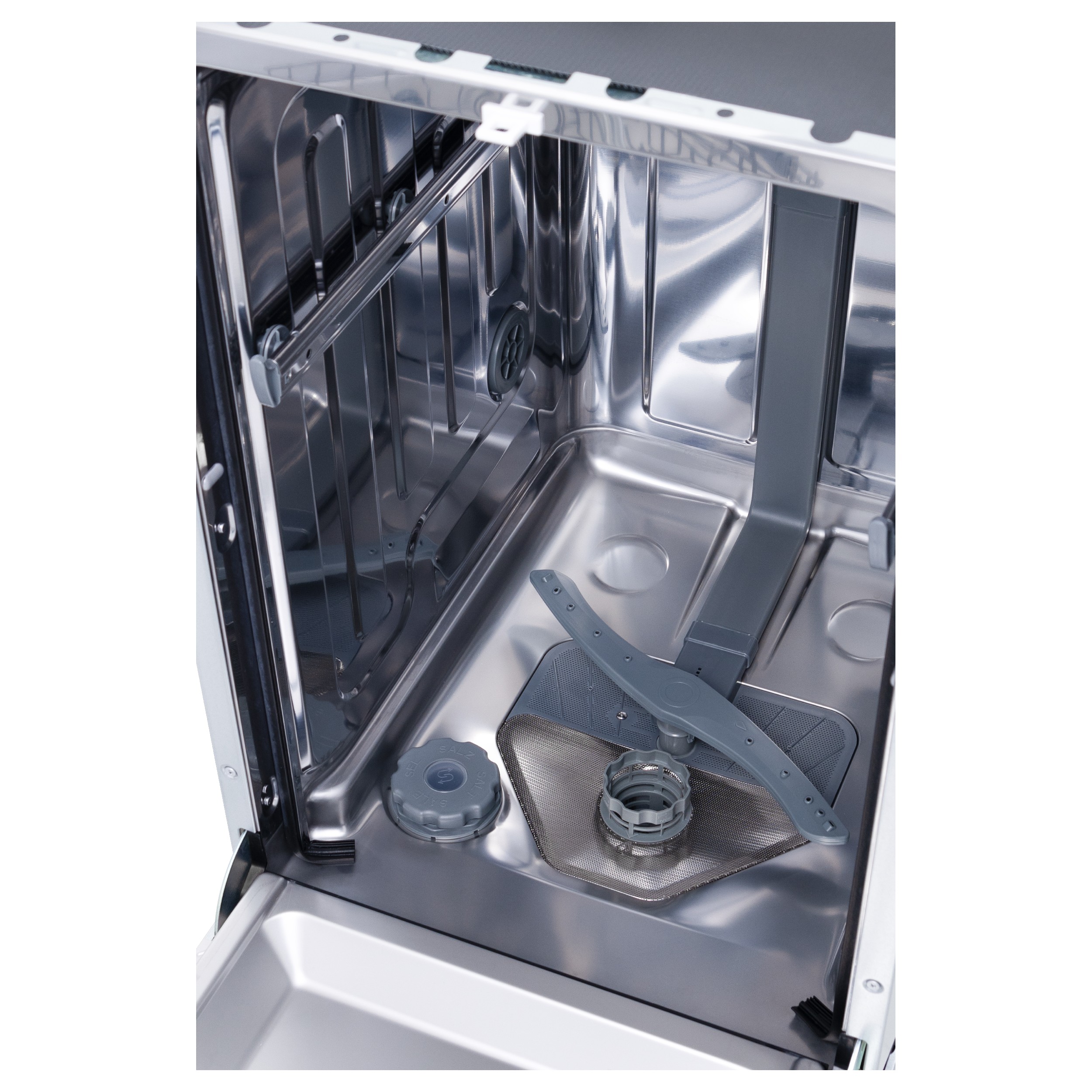 Компактная встраиваемая посудомоечная машина шириной всего 45 см подходит для небольших кухонных пространств, при этом практически не уступает в объемах загрузки стандартным моделям.