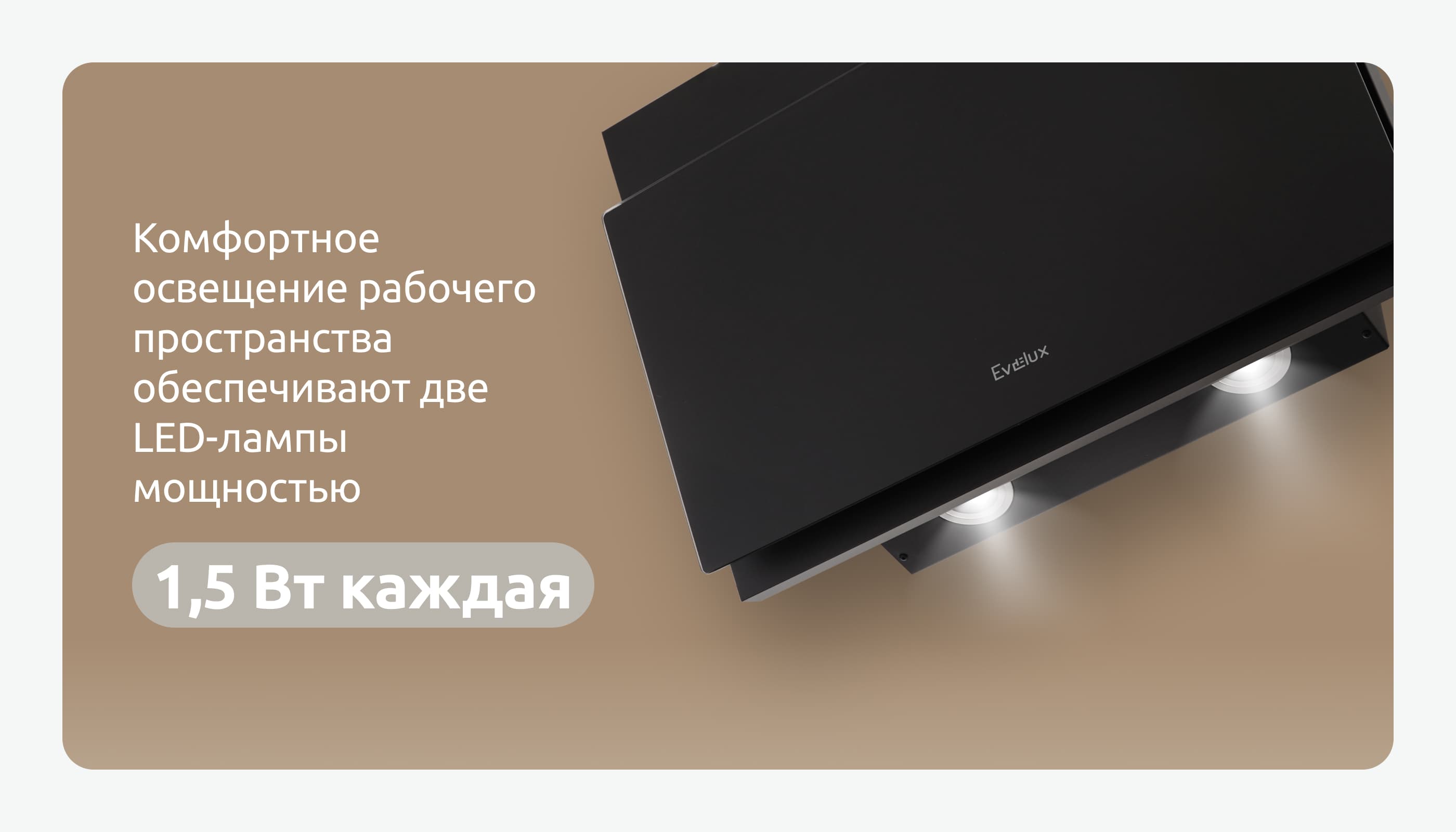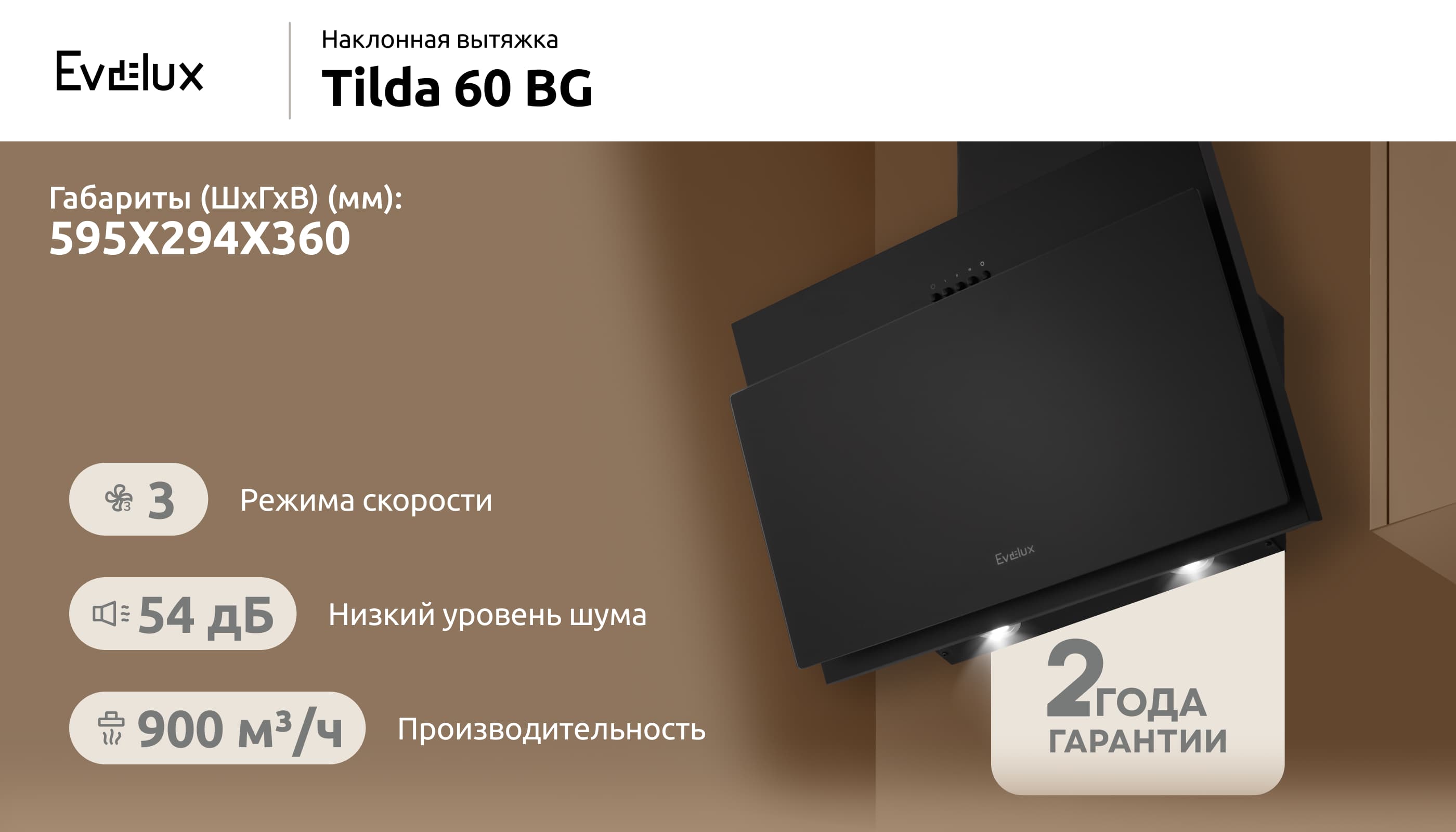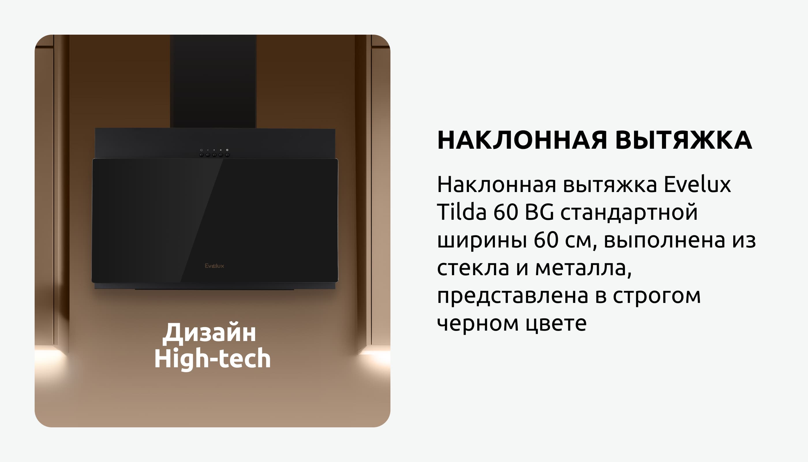 Наклонная вытяжка Evelux Tilda 60 BG, стандартной шириной 60 см, выполнена из стекла и металла в современном хай-тек дизайне, представлена в строгом черном цвете. Прибор предлагает три режима работы и обладает высокой производительностью, достигающей до 900 кубических метров в час. Для дополнительного удобства вытяжка оснащена двумя LED-лампами мощностью по 1,5 ватта каждая, обеспечивающими эффективное освещение рабочей зоны. Жировой фильтр, изготовленный из алюминия, эффективно задерживает жир и другие частицы, образующиеся в процессе приготовления пищи. Это способствует предотвращению накопления жира как внутри вытяжки, так и на вентиляционных каналах, кроме того, предусмотрена возможность установки угольных фильтров, что значительно повышает эффективность удаления неприятных запахов из воздуха.