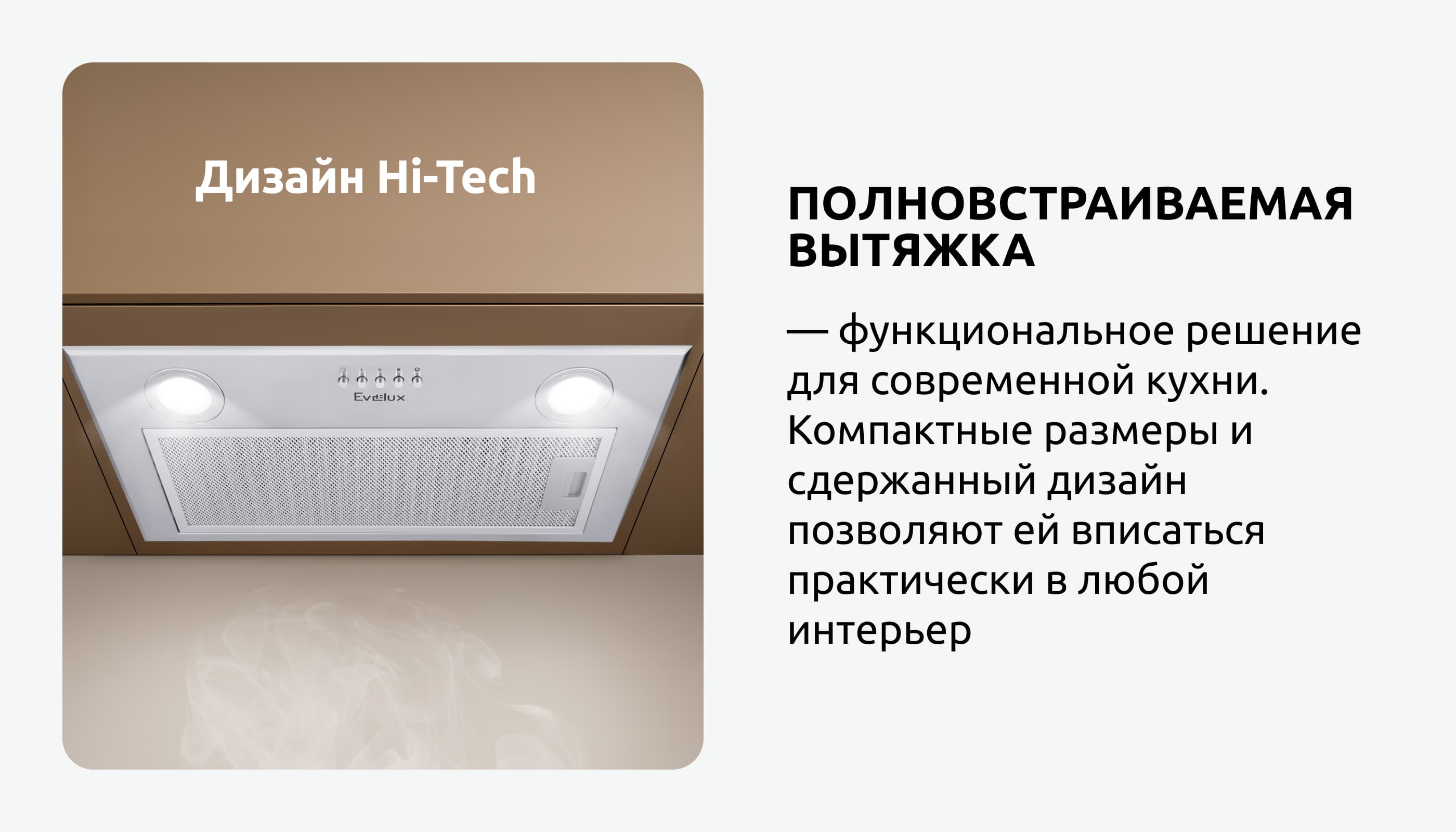 Современная полновстраиваемая вытяжка Evelux Margit 60 X эффективно избавляет кухонное пространство от дыма и неприятных запахов, создавая при этом гармоничный ансамбль с любым интерьером.